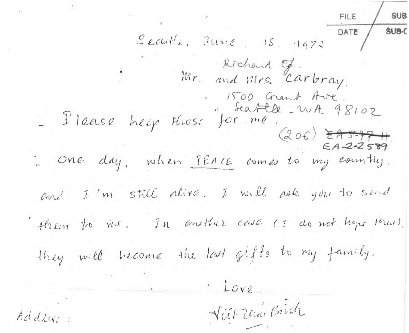 Thư Nguyễn Thái Bình gửi người bạn tại Hoa Kỳ trước khi về nước, nguồn: